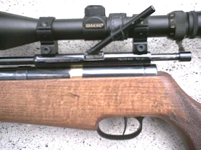 ![]() The loading tube from the top, you can see the opening in which the pellet is dropped to the left hand side of the scope |