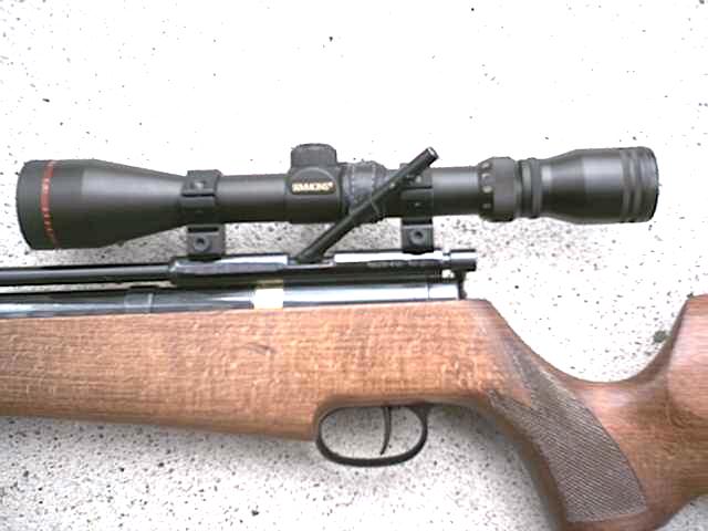 ![]() The loading tube from the top, you can see the opening in which the pellet is dropped to the left hand side of the scope |